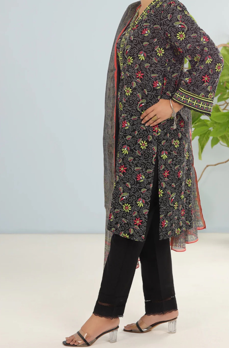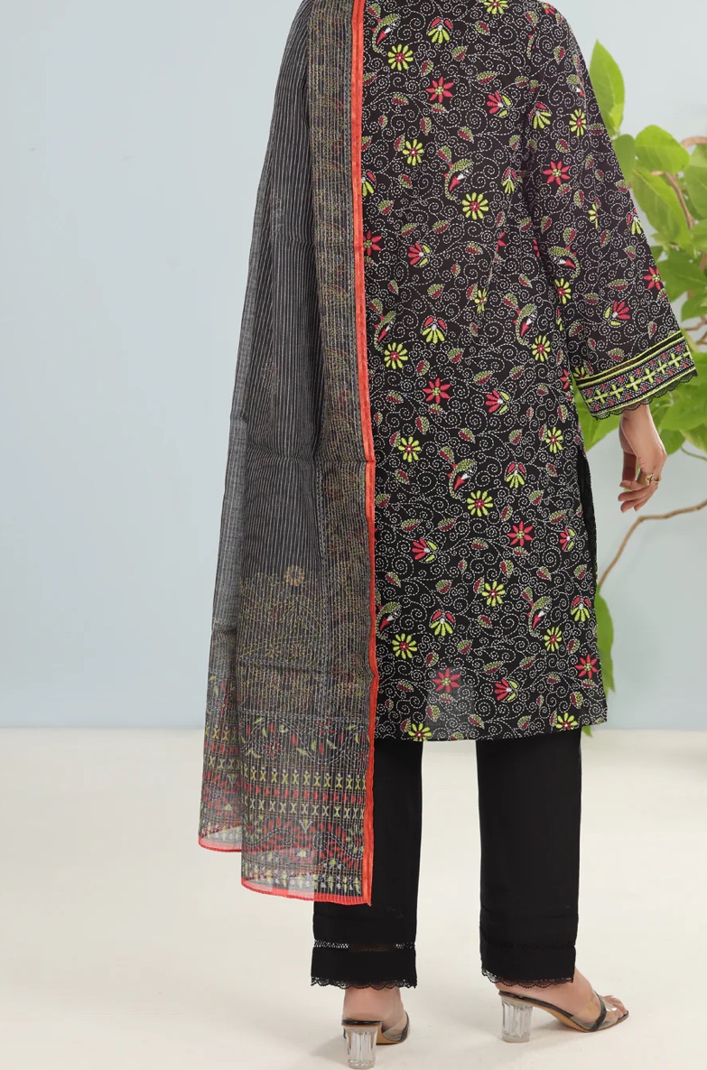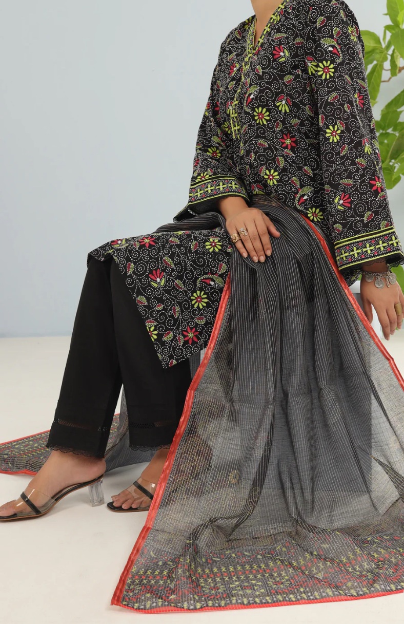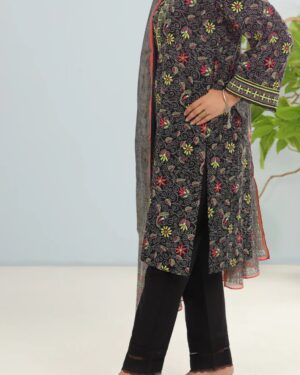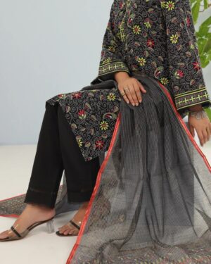 JA0011 ALMIRAH BLACK LAWN 3 PIECE STITCHED