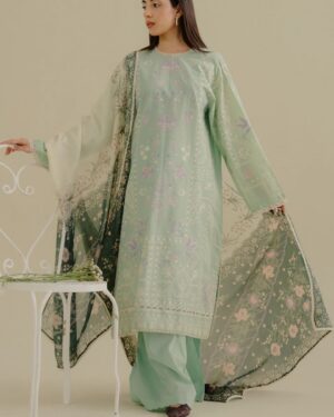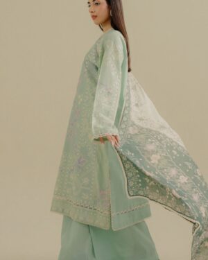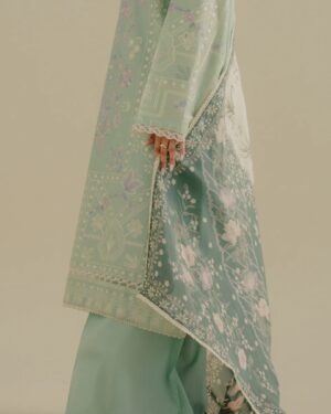 The Mint Green ensemble, paired with a luxurious silk dupatta and composed embroidery, exudes a refined, calming elegance.