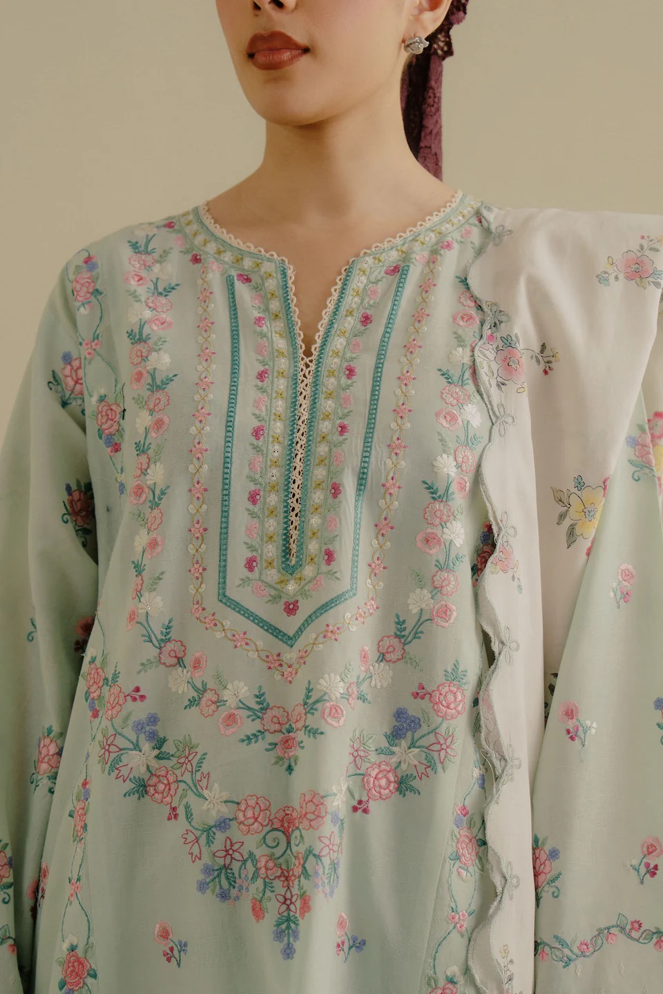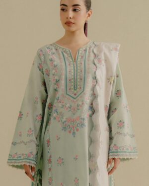 The mint green jacquard, paired with a jacquard dupatta and composed embroidery, features mid-tone detailing for a balanced and refined design.