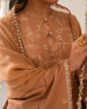 Experience elegance and comfort with our RUSTIC BROWN-3 PIECE EMBROIDERED LAWN SUIT. The unstitched 3-piece set includes a lawn embroidered shirt front, back and sleeves, a cambric dyed trouser, and an organza embroidered dupatta. Stay stylish with high-quality materials and intricate embroidery. Perfect for any occasion.