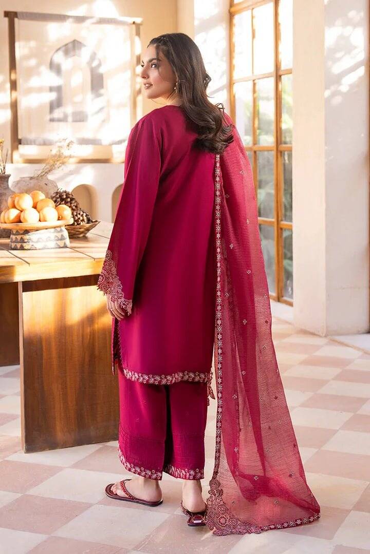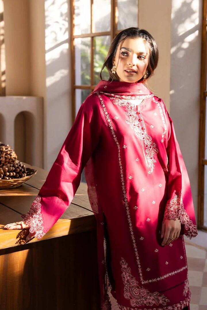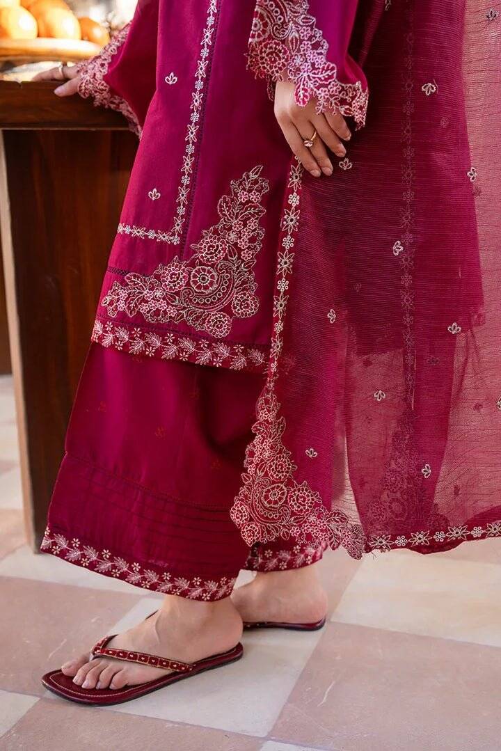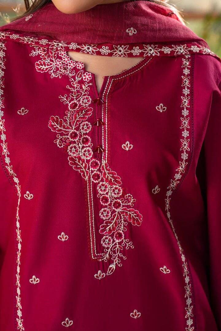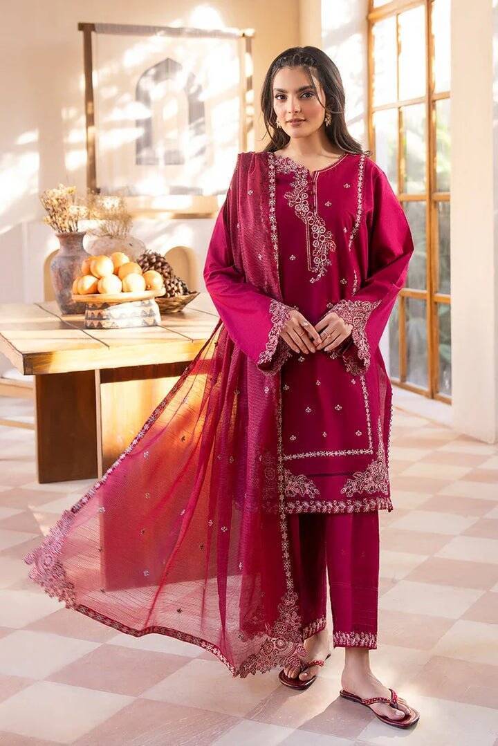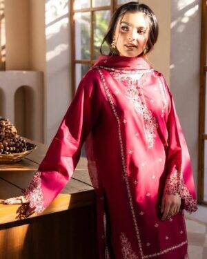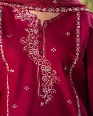 Fabric: Cambric3 PC Embroidered Cambric Shirt with Dyed Embroidered Trouser and Khaddi Net Embroidered Dupatta