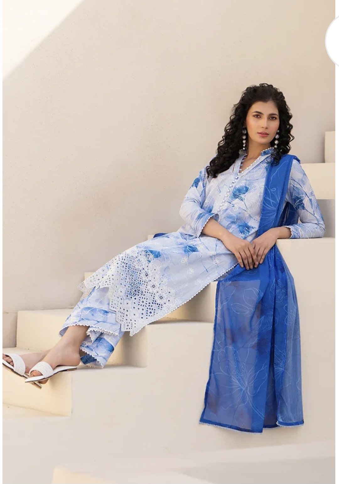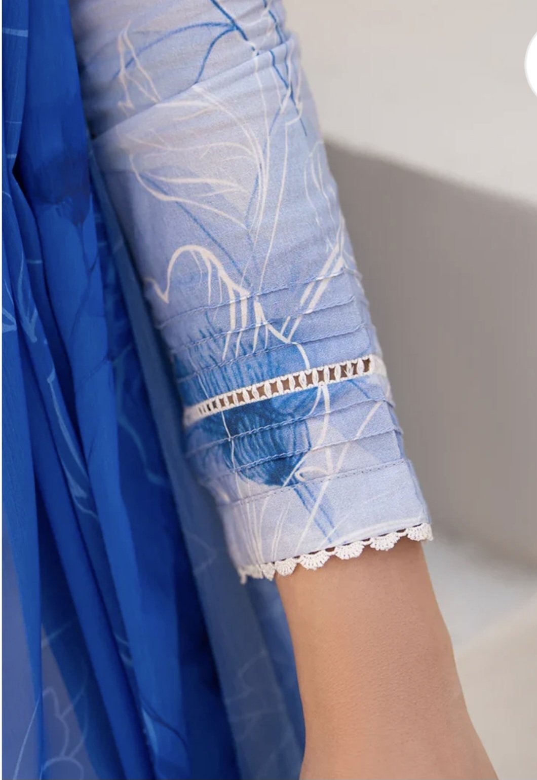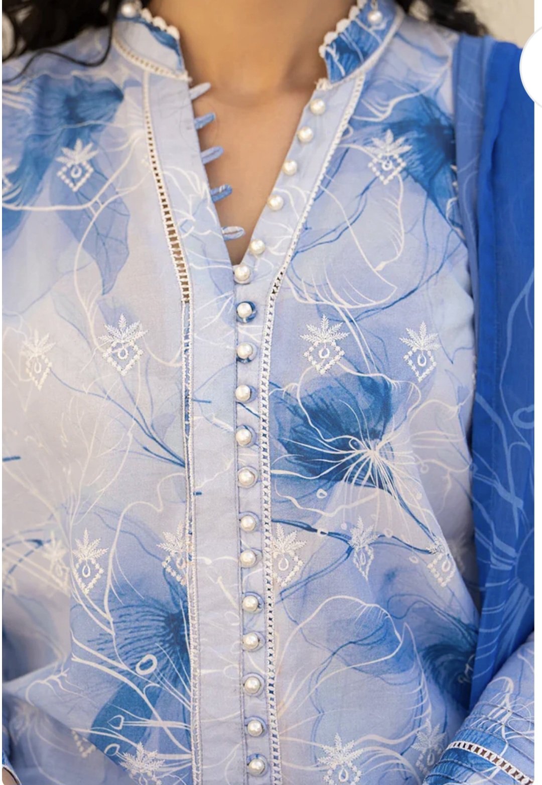 CambricPrinted Embroidered Shirt, Printed Trouser with Printed Chiffon Dupatta