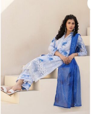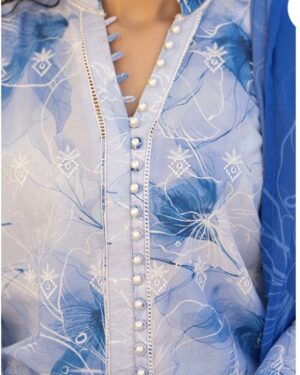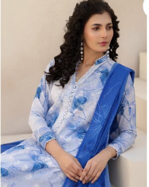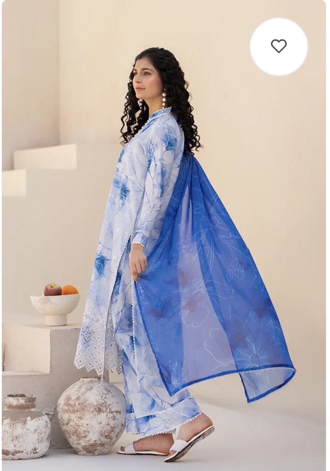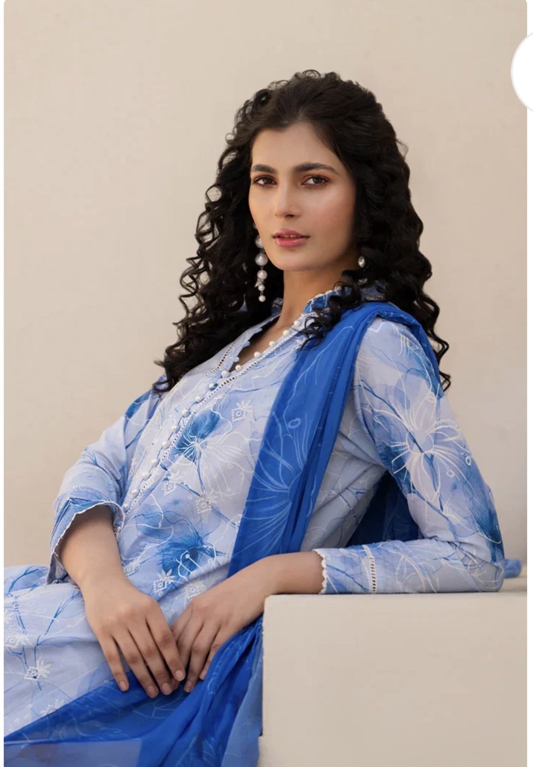 CambricPrinted Embroidered Shirt, Printed Trouser with Printed Chiffon Dupatta