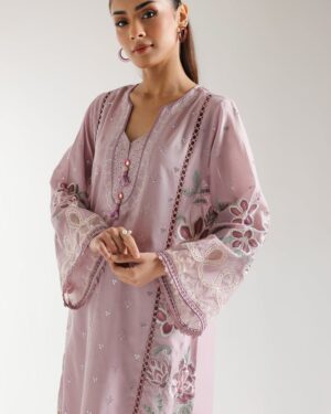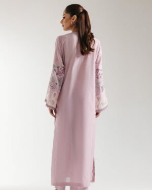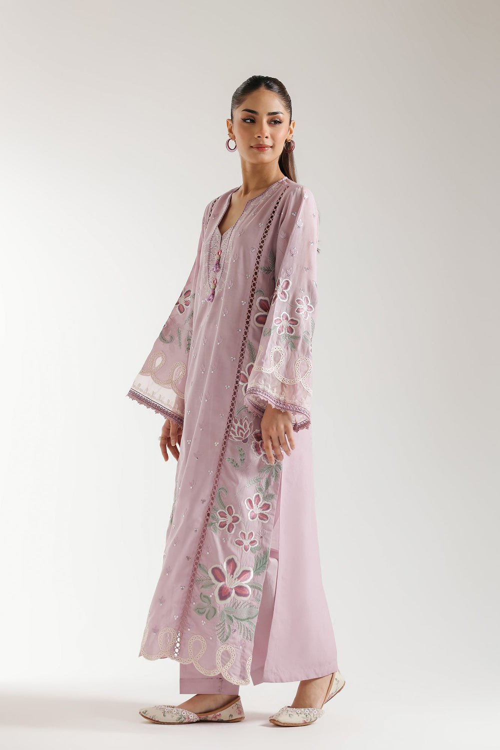 SHIRT – STRAIGHT FIT – ROUND NECK WITH V SLIT – SCALLOPED HEM – FULL SLEEVES – LONG LENGTH
