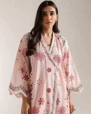 SHIRT – A LINE FIT – WRAP STYLE – V NECK – SCALLOPED HEM – FULL SLEEVES – LONG LENGTH