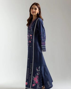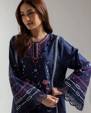 SHIRT – A LINE FIT – ROUND NECK WITH SLIT – FULL SLEEVES – SCALLOPED HEM – LOW SIDE SLITS – LONG LENGTH