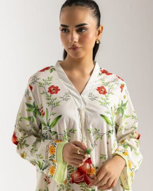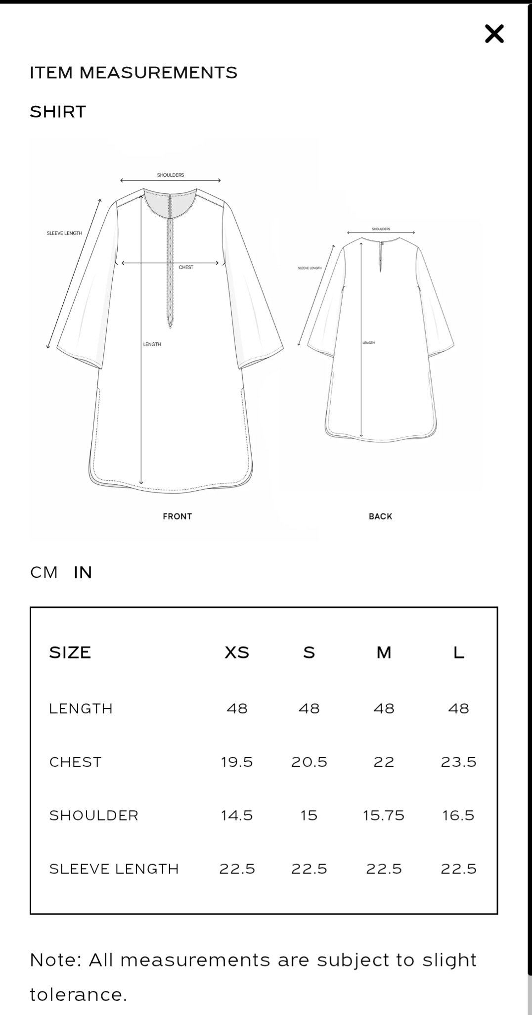 SHIRT – LOOSE FLOWING FIT – A LINE HEM – V NECK – FULL SLEEVES – LOW SIDE SLITS – LONG LENGTH