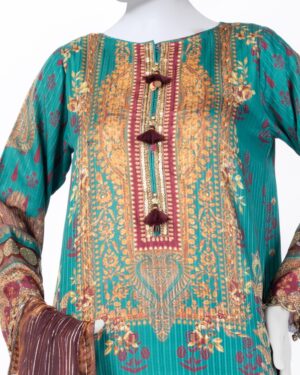 Collection: Embroidered & Digital Printed Dobby Shirt, Dyed Lawn Trouser, Digital Printed Zari Tar Chiffon Dupatta