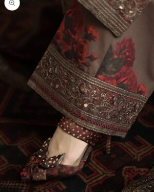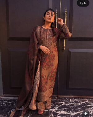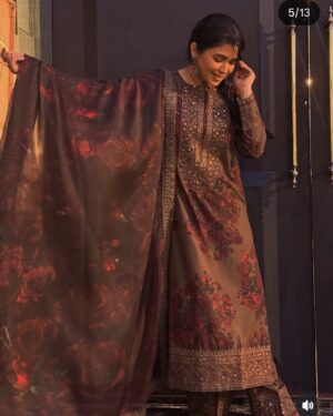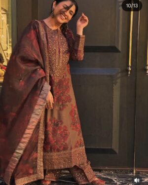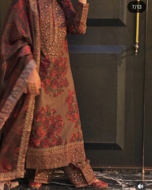 This outfit is specially Designed with Premium printed Lawn and detailed Embroidered work. The shirt has several Embroidered details on neck ,sleeves and Plazo ,paired with Printed Silk embroidered Dupatta perfect for your special day .