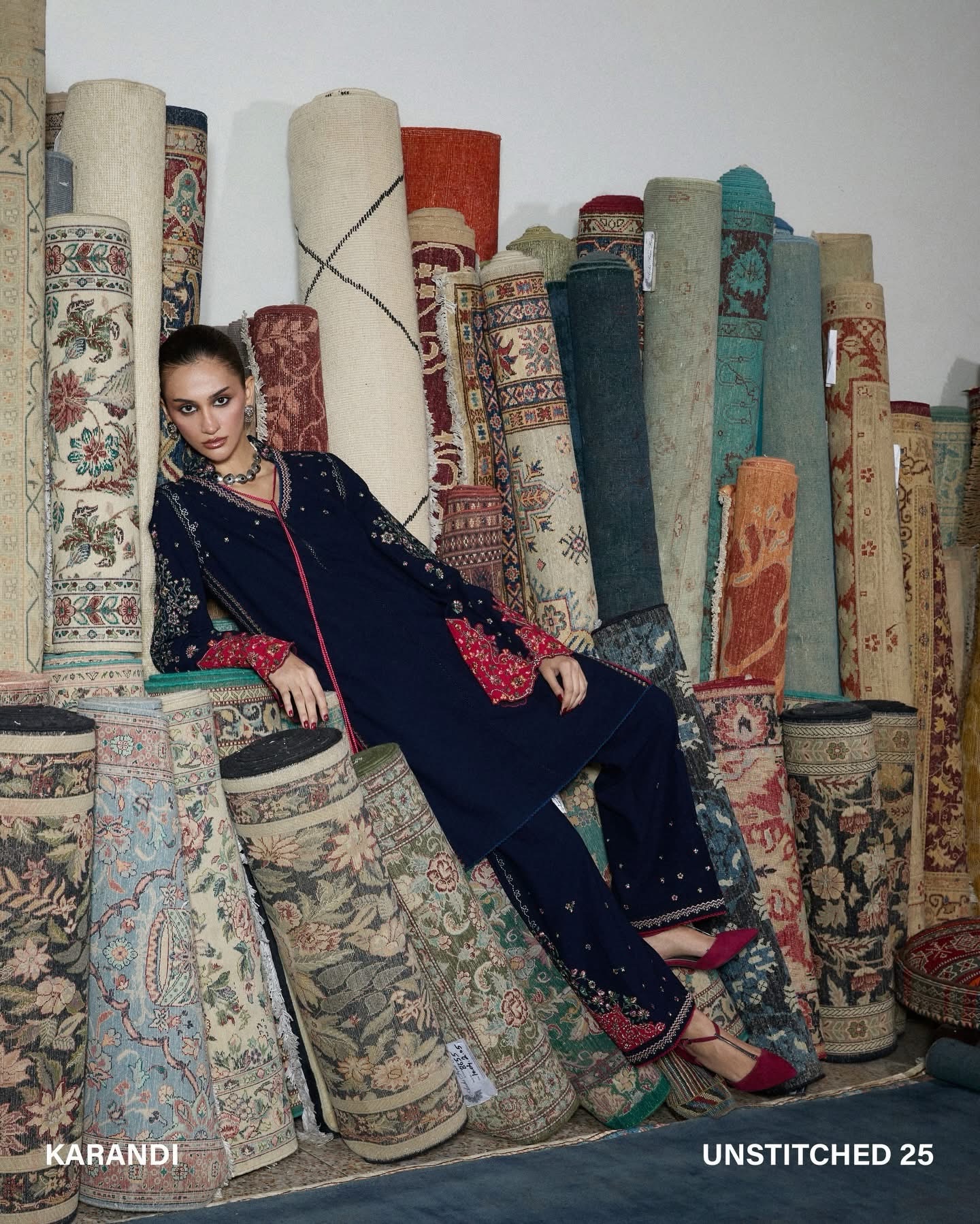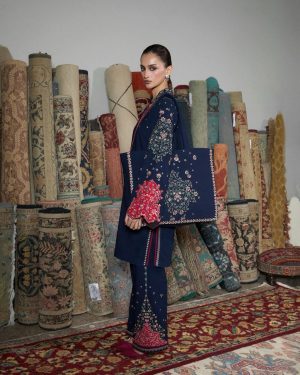 • Embroidered Neckline & Trouser Border (Karandi) 2.25 Meters