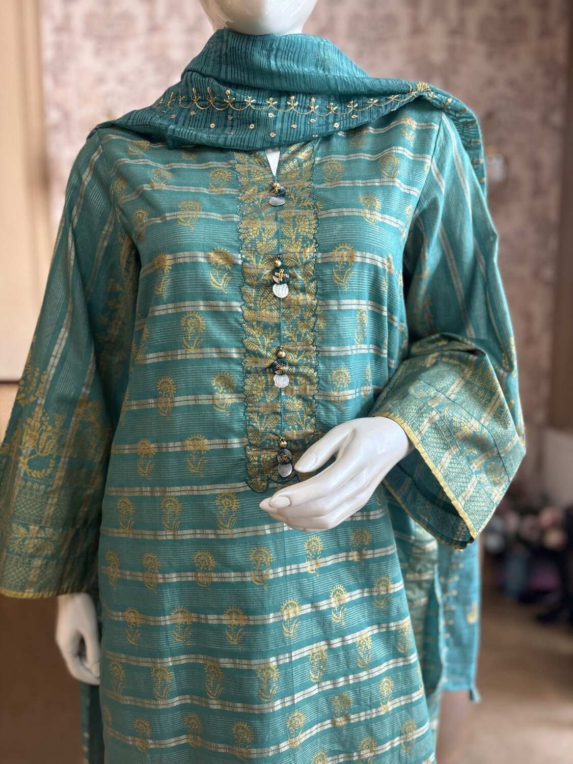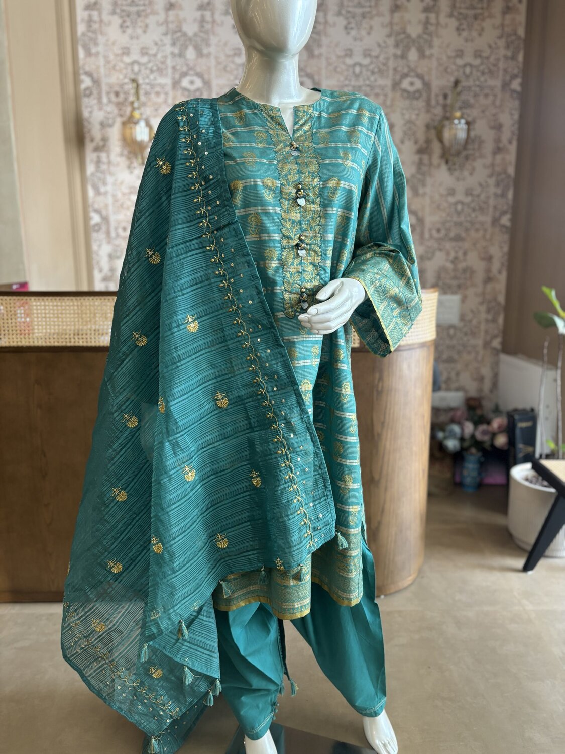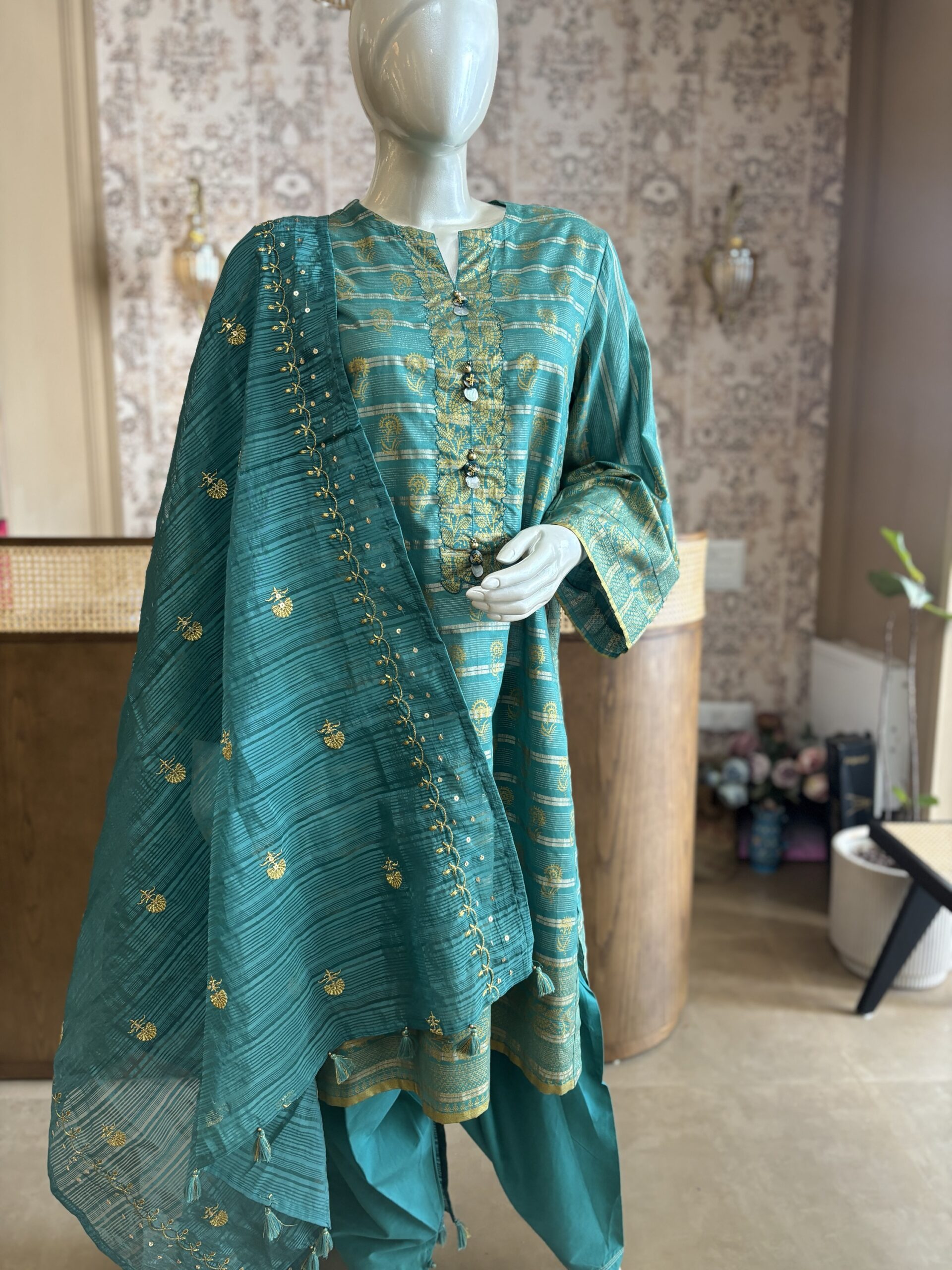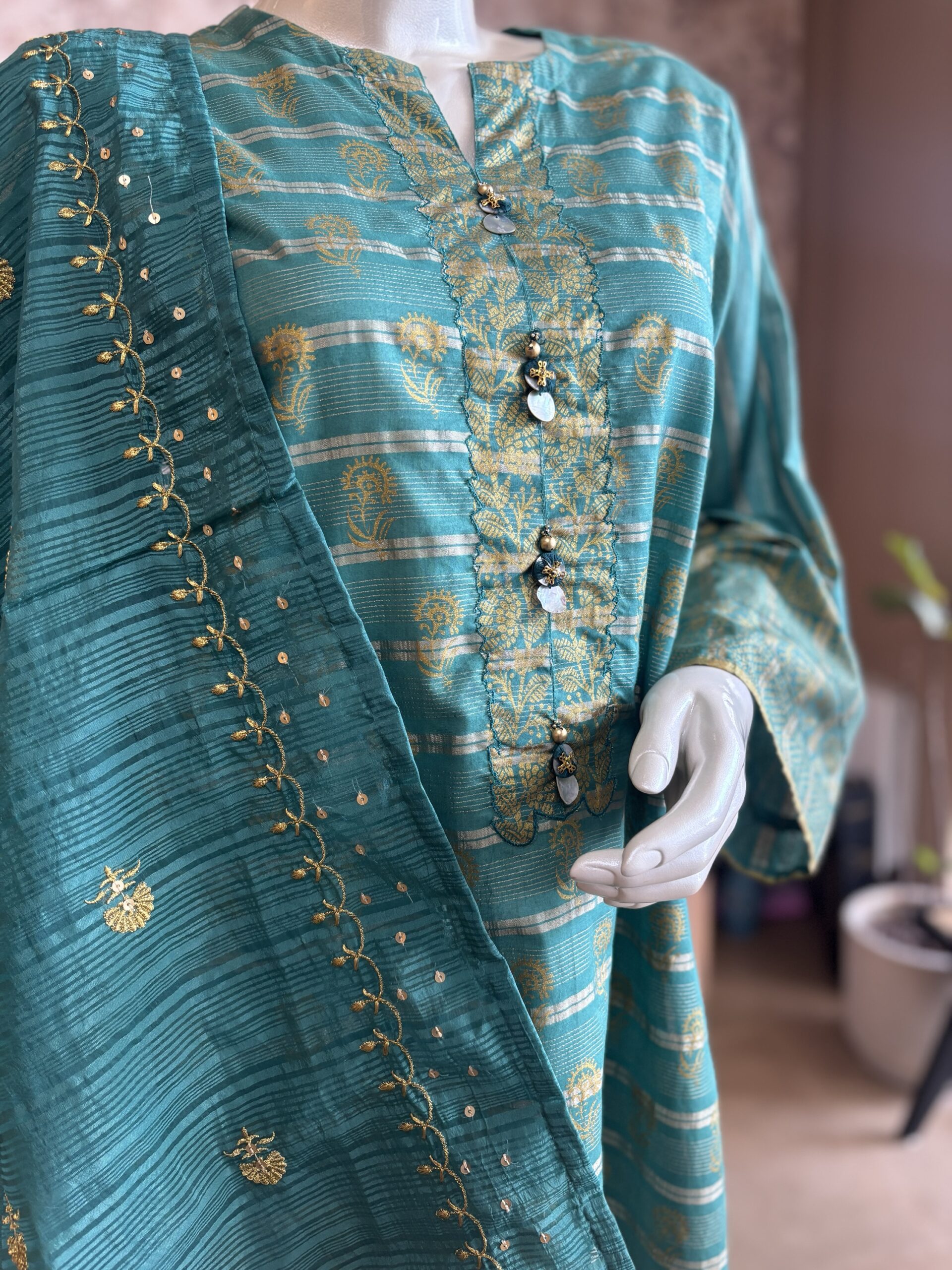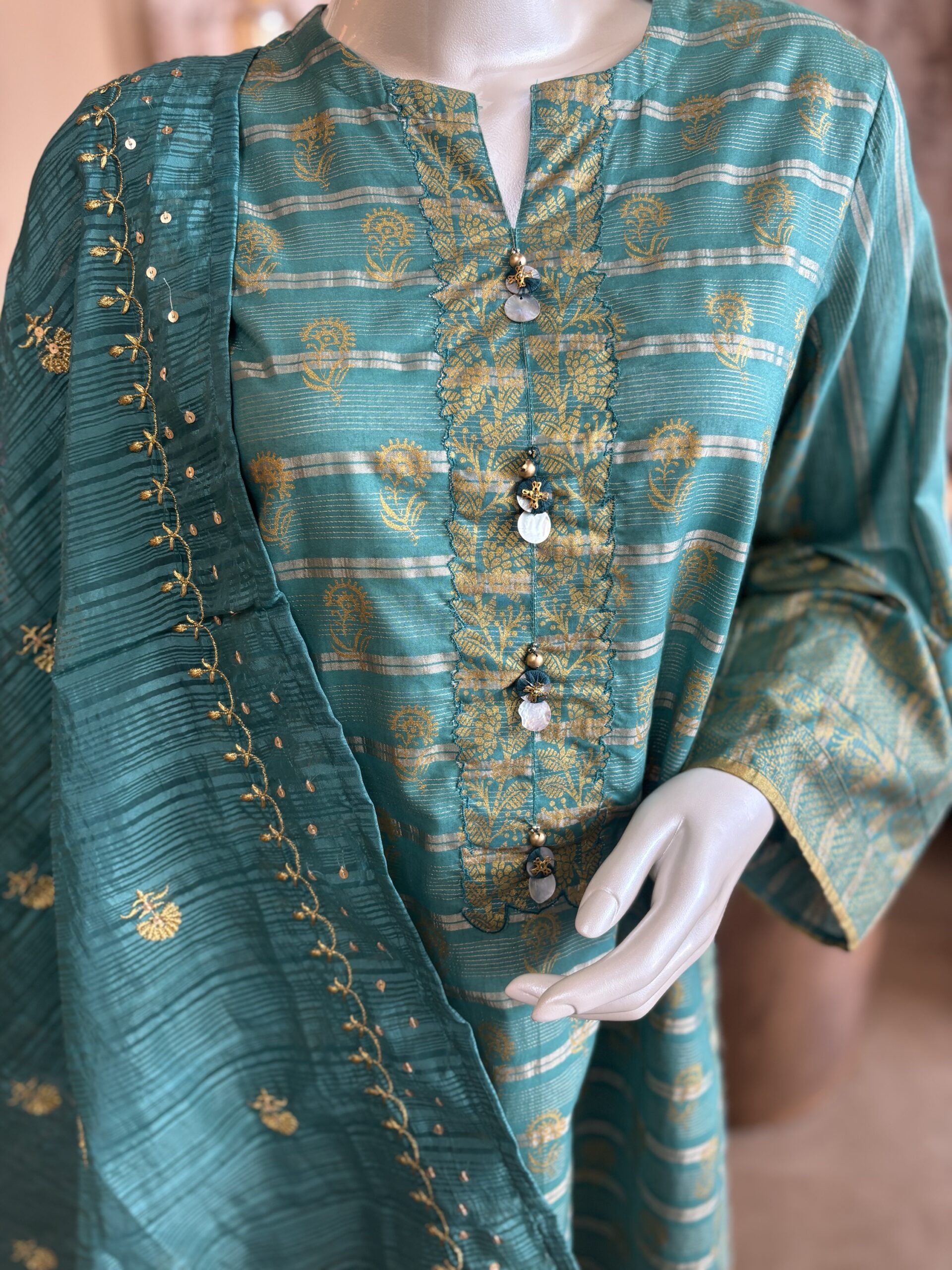 Embellishment: Button On Front Slit And Tassels On Dupatta