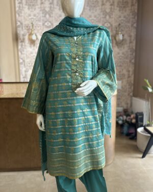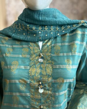 Collection: Printed Over Zari Tar Lawn Shirt With Embroidered Organza Dupatta & Lawn Trouser