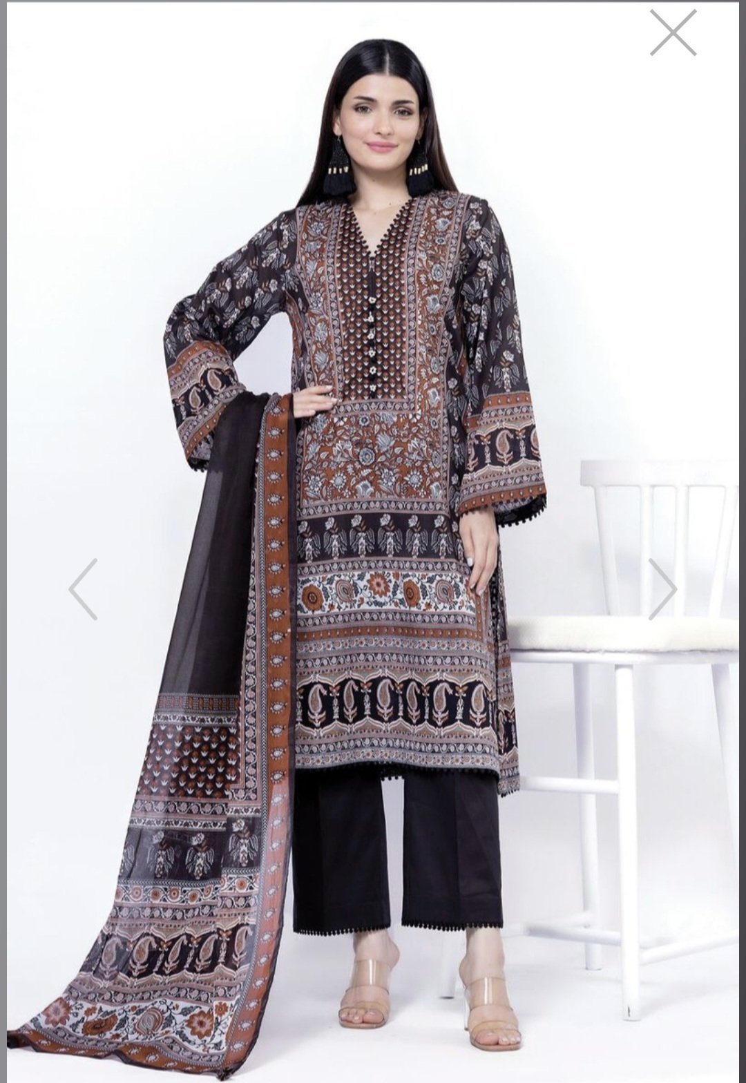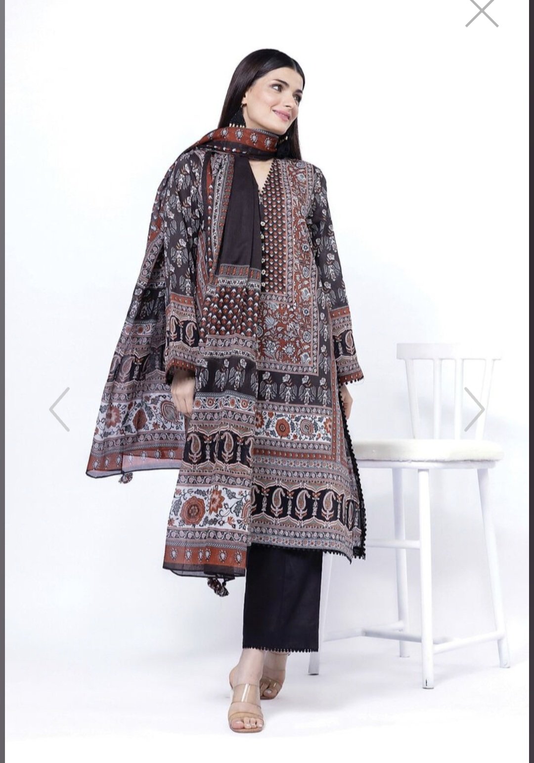 3Pc Unstitched Lawn Suit with Lawn Dupatta.