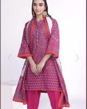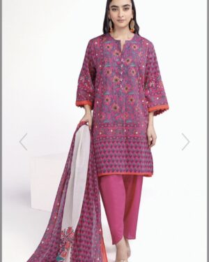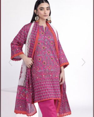 3Pc Unstitched Lawn Suit with Lawn Dupatta.
