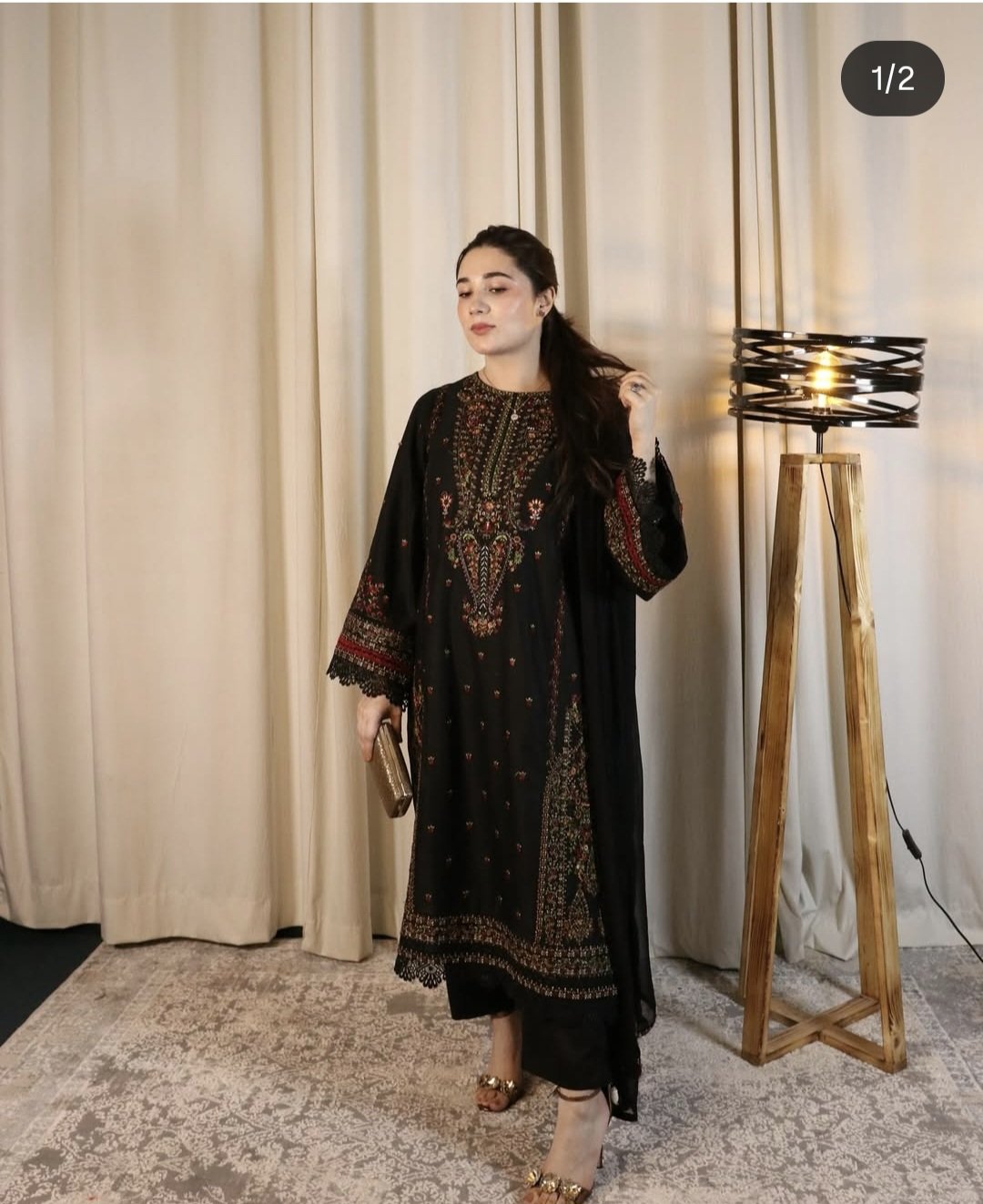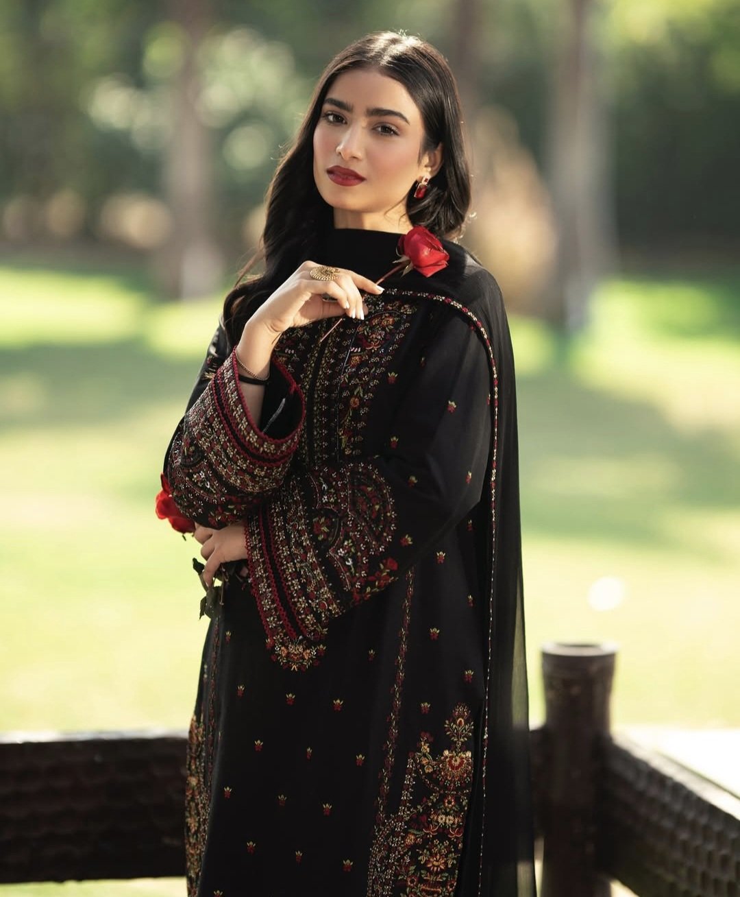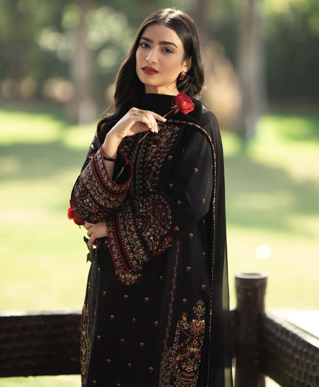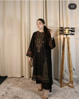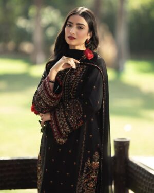 Lawn Embroidered Shirt Paired with chiffon embroidered dupatta and straight trouser.