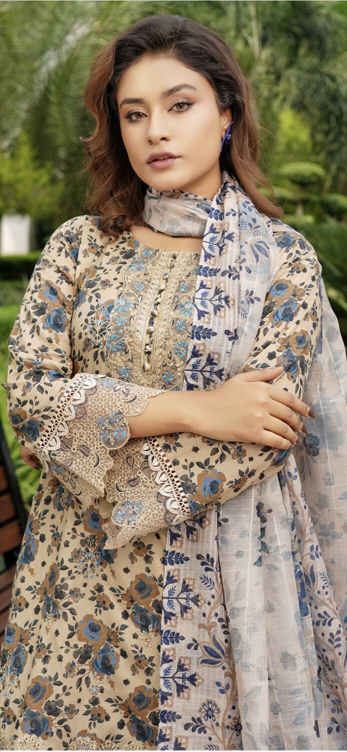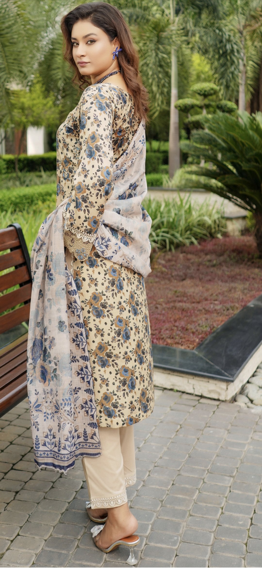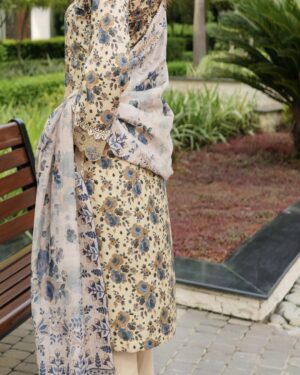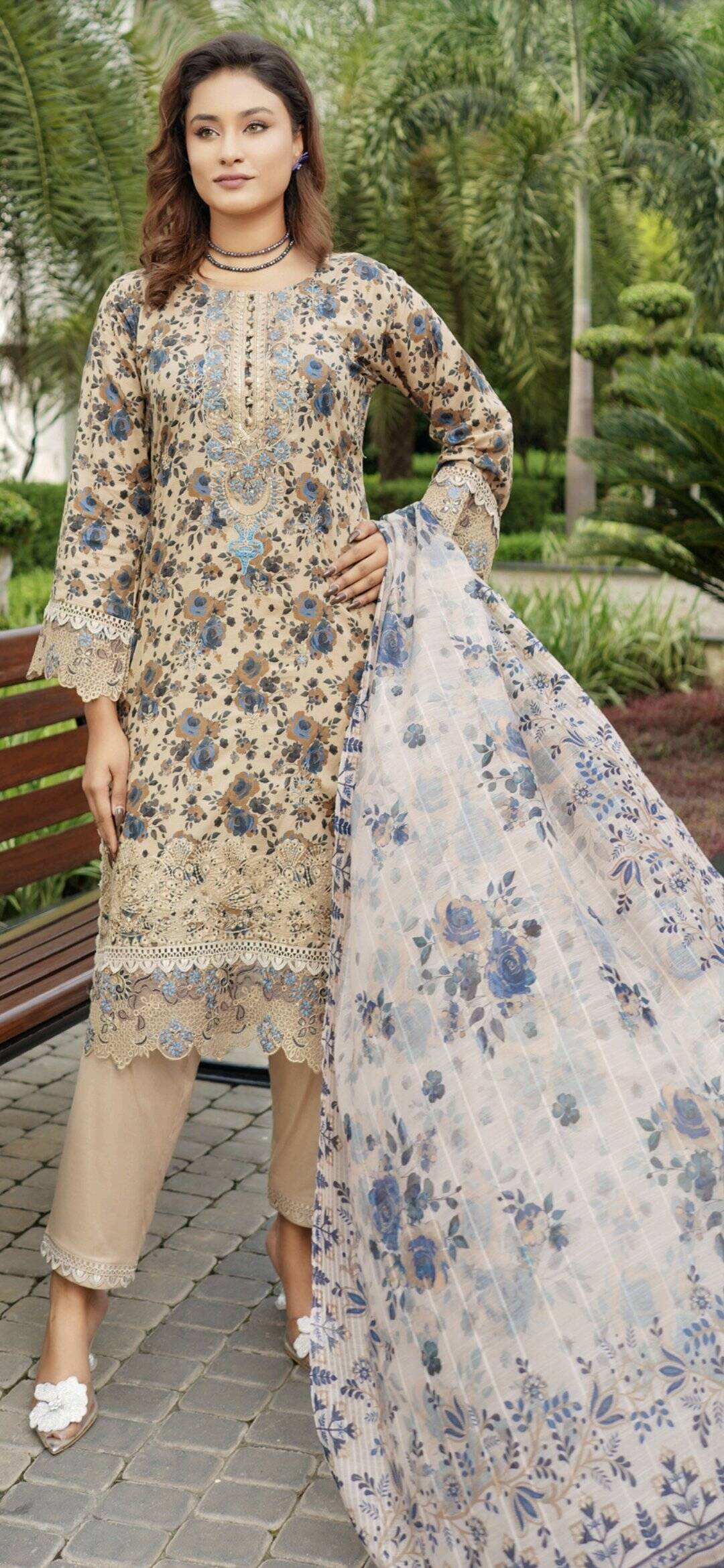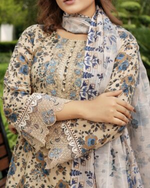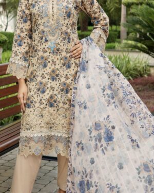 3Pc Embroidered Lawn Suit with fancy cotton Dupatta.