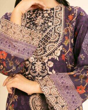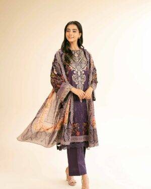 Unveil your signature style with digital printed embroidered three-piece from the latest unstitched summer collection.