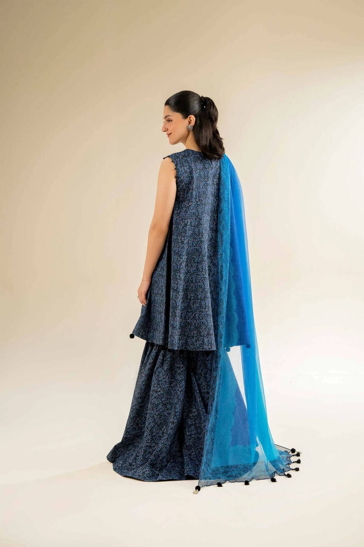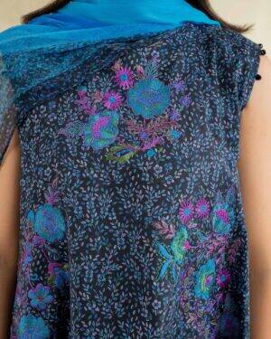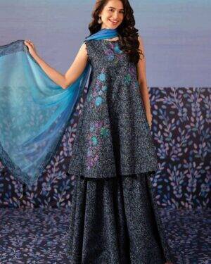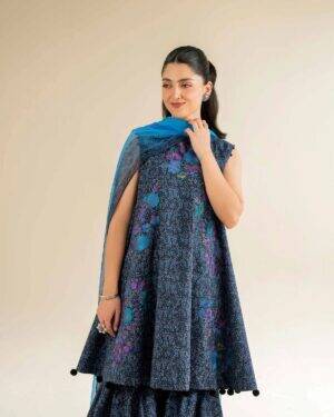 Exude grace in this printed embroidered three-piece from the latest unstitched summer collection.