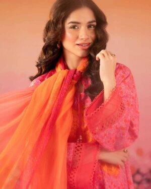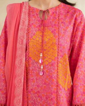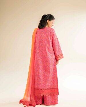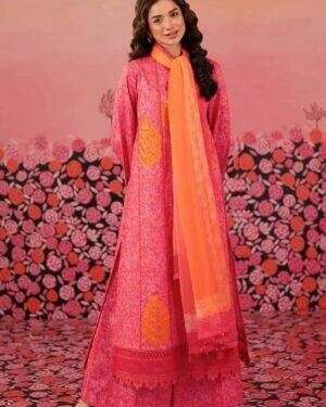 Exude grace in this printed embroidered three-piece from the latest unstitched summer collection.