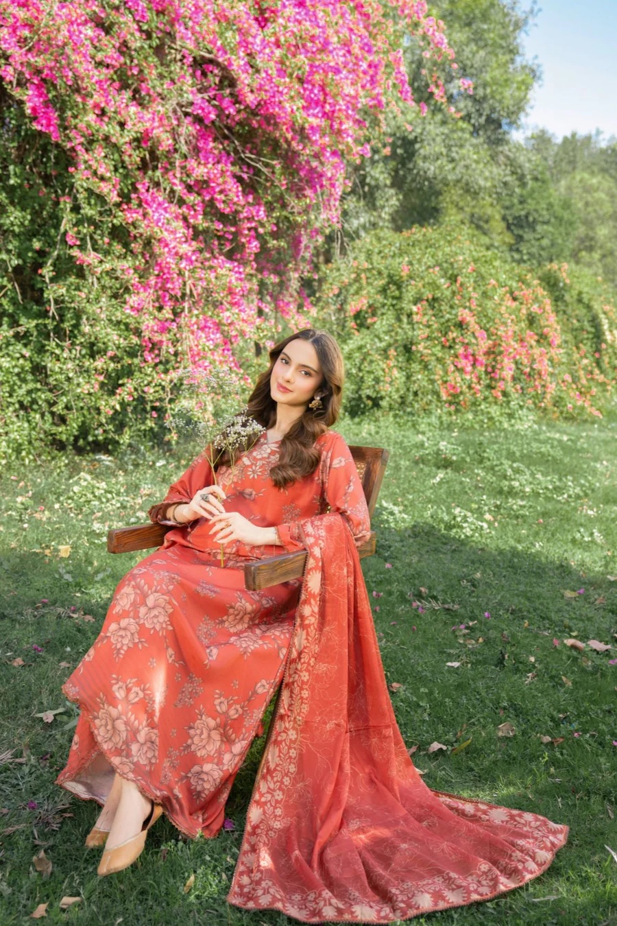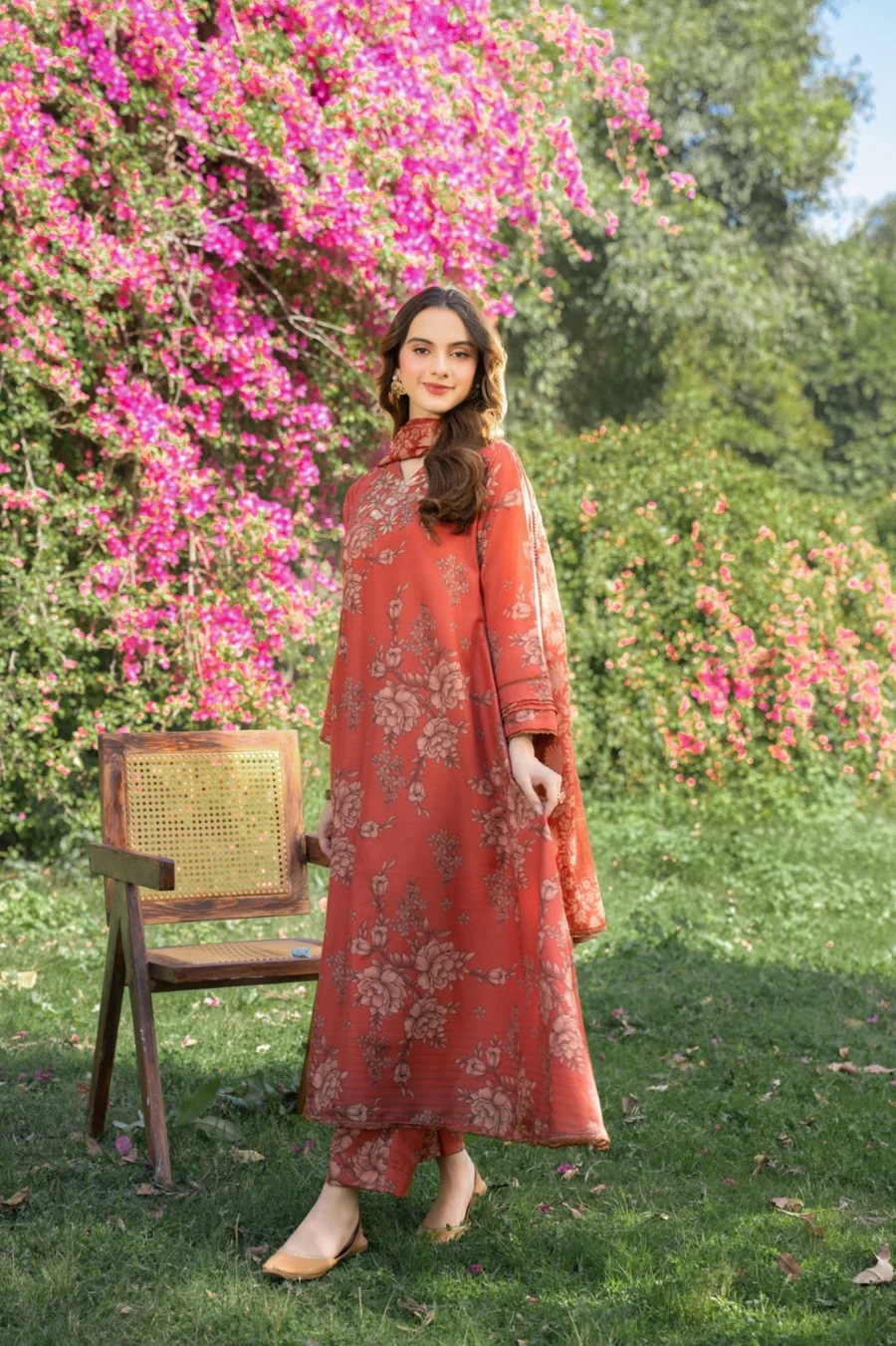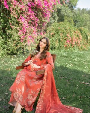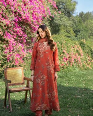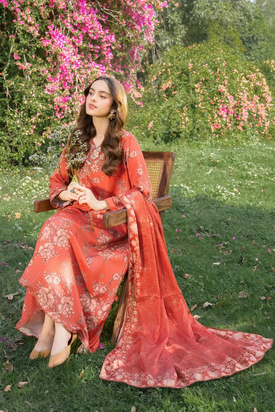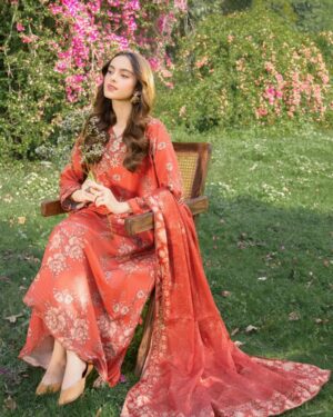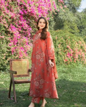 3Pc Embroidered Lawn suit with Printed silk Dupatta