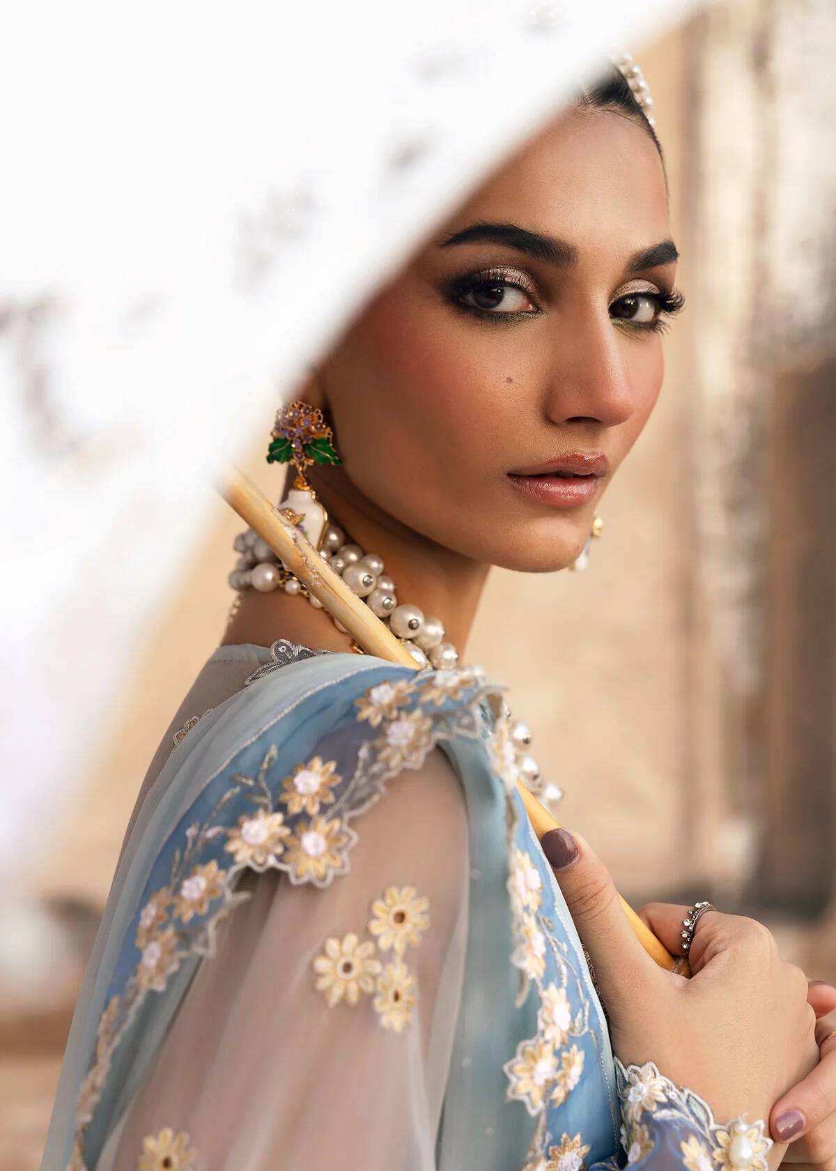 Embroidered Organza Front Neckline With Luxury Hand Embellishment