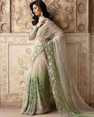 Gradient + Embroidered Chiffon Saree Pallu