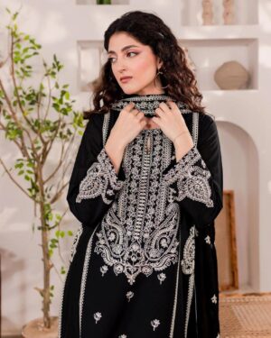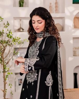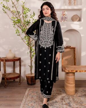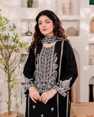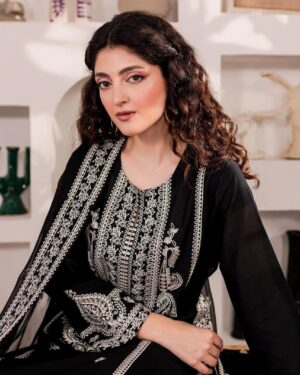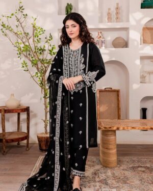 3Pc Embroidered Lawn Suit with Embroidered Chiffon Dupatta.