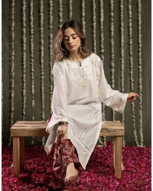 Embroidered Lawn Suit with Embroidered Lawn bottom.